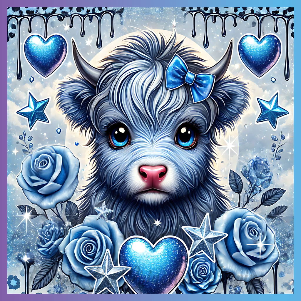 Theme: Calf with cute, blue, flowers, hearts.