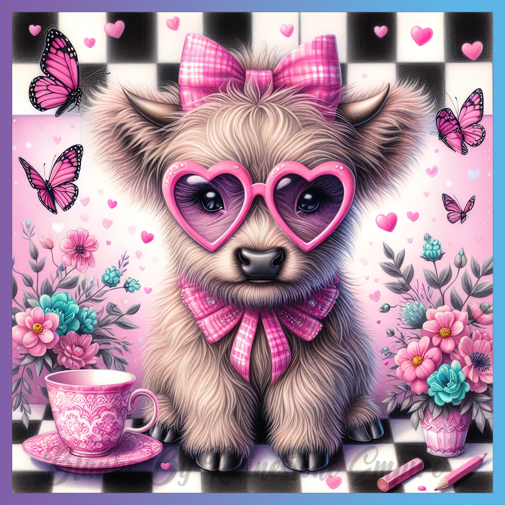 Theme: Puppy with glasses, bow, flowers, butterflies.