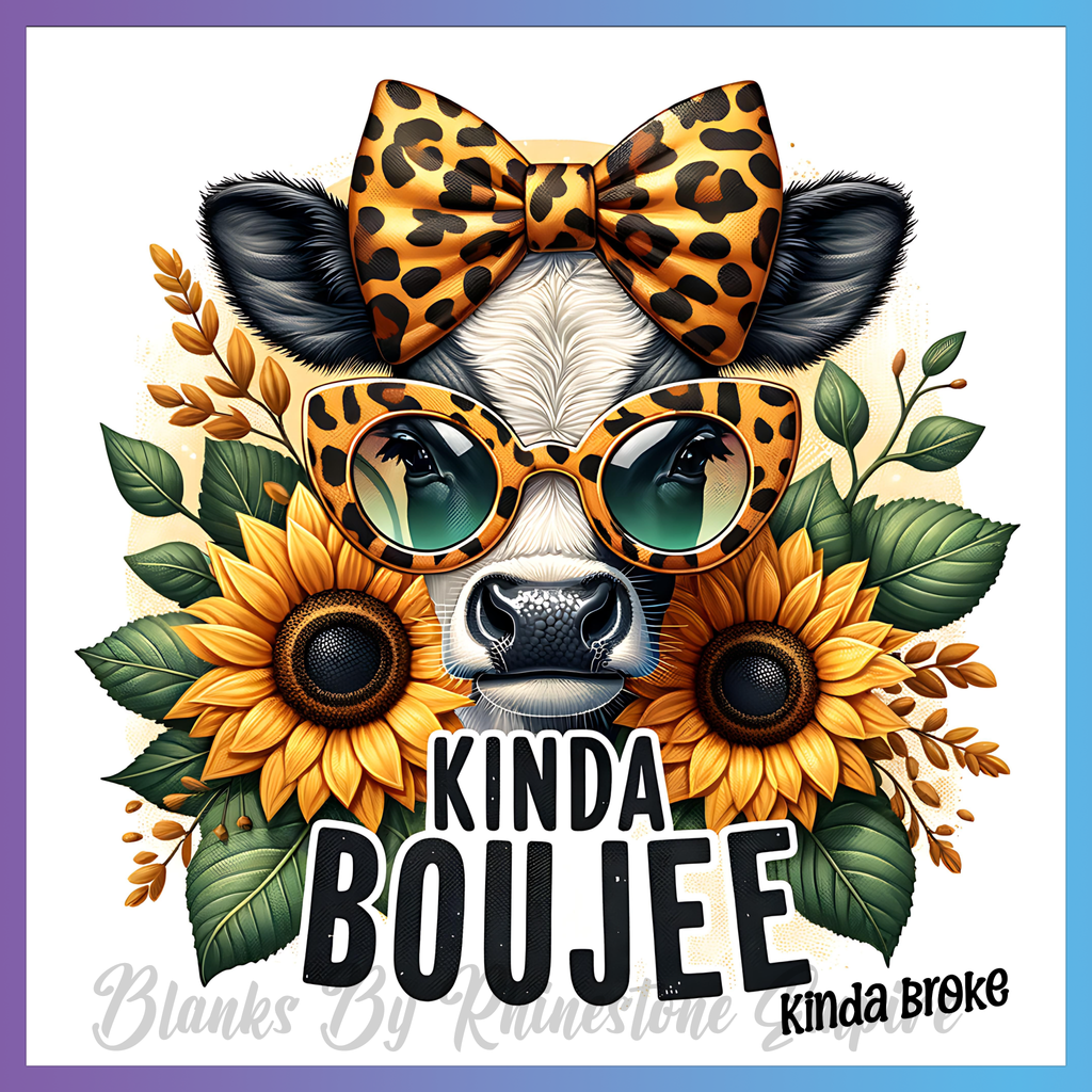 Theme: Cow with sunglasses, sunflowers, leopard print, bow.