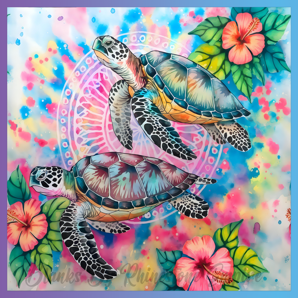 Theme: Turtle with tropical, flowers, colorful, underwater.