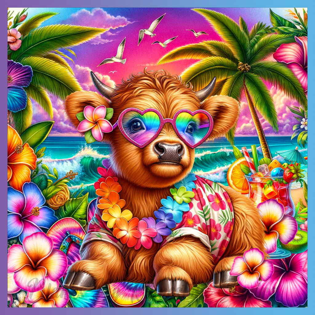 Theme: Calf with tropical, flowers, beach, sunglasses.