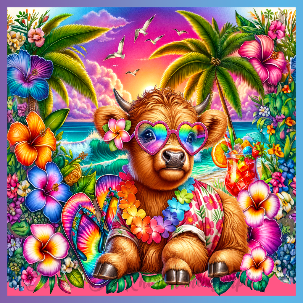 Theme: Calf with tropical, flowers, beach, sunglasses.