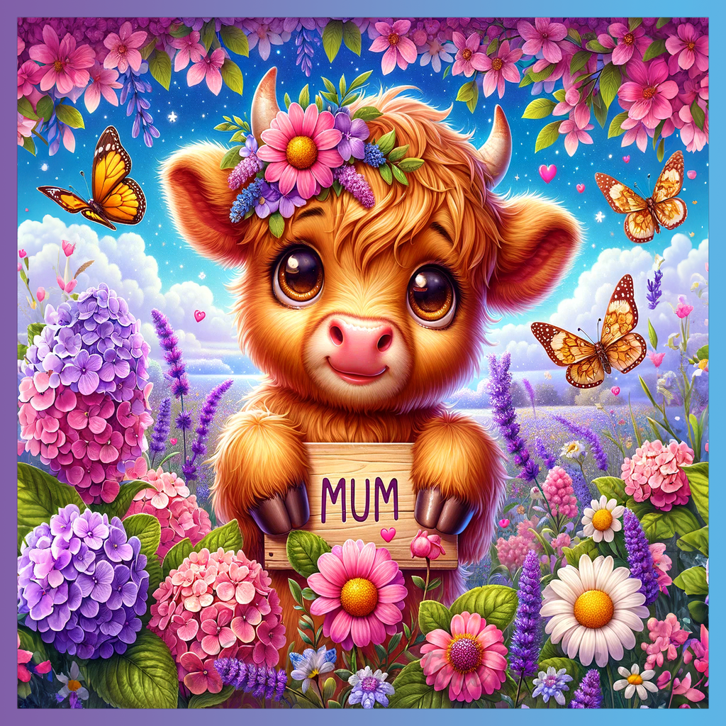 Theme: Calf with flowers, butterflies, colorful, cute.