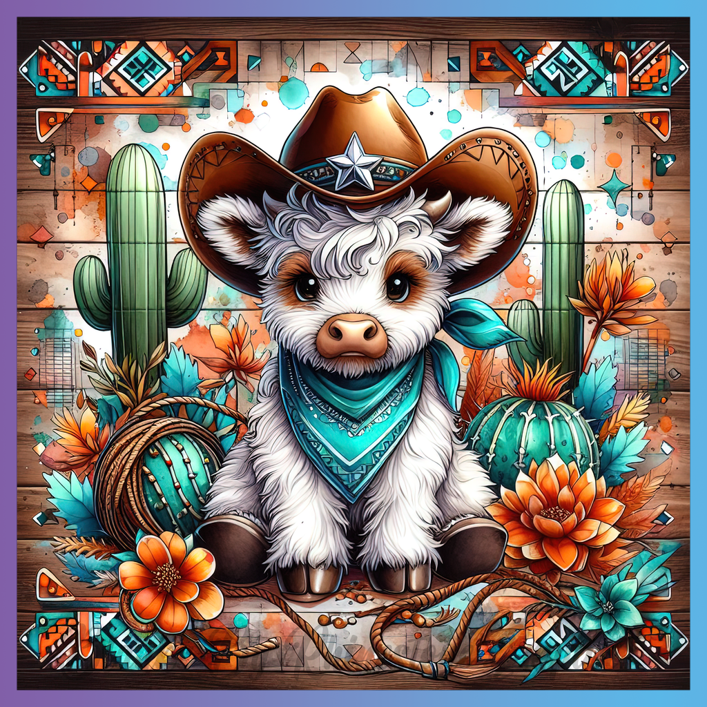 Theme: Calf with cowboy, hat, bandana, cacti.