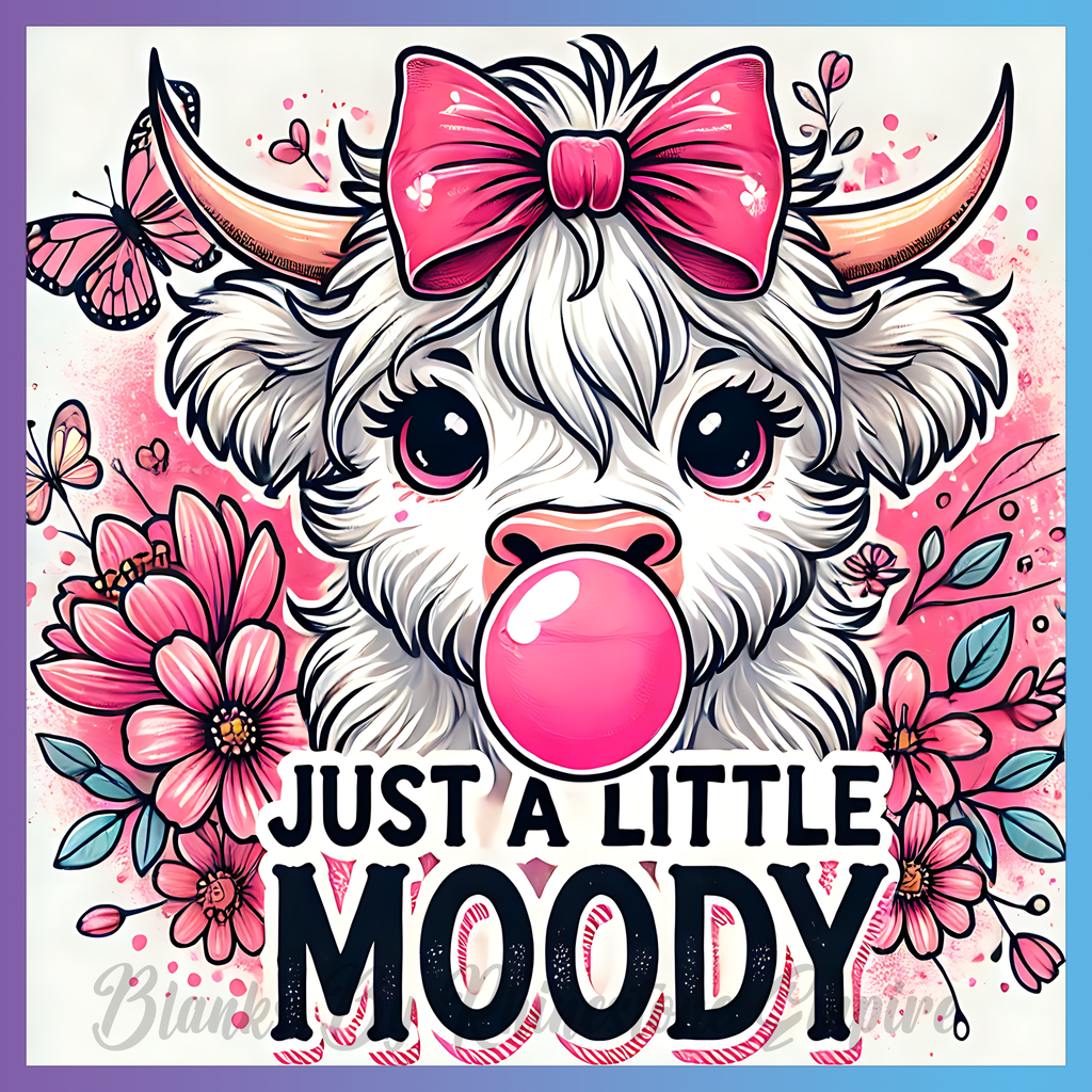 Theme: Cow with bubblegum, flowers, butterflies, pink.