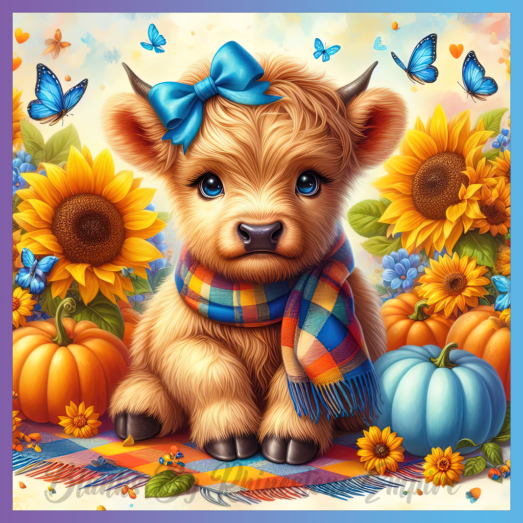Theme: Calf with flowers, sunflowers, butterflies, pumpkins.