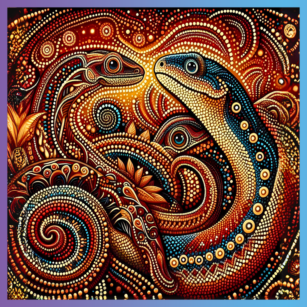 Theme: Lizard with abstract, colorful, patterns, swirls.