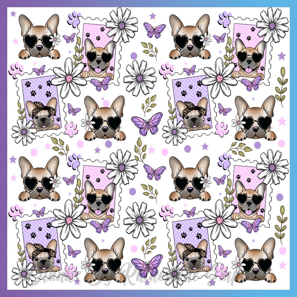 Theme: Dog with illustration, flowers, butterflies, frames.