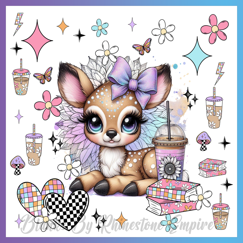 Theme: Deer with cute, flowers, butterflies, drinks.