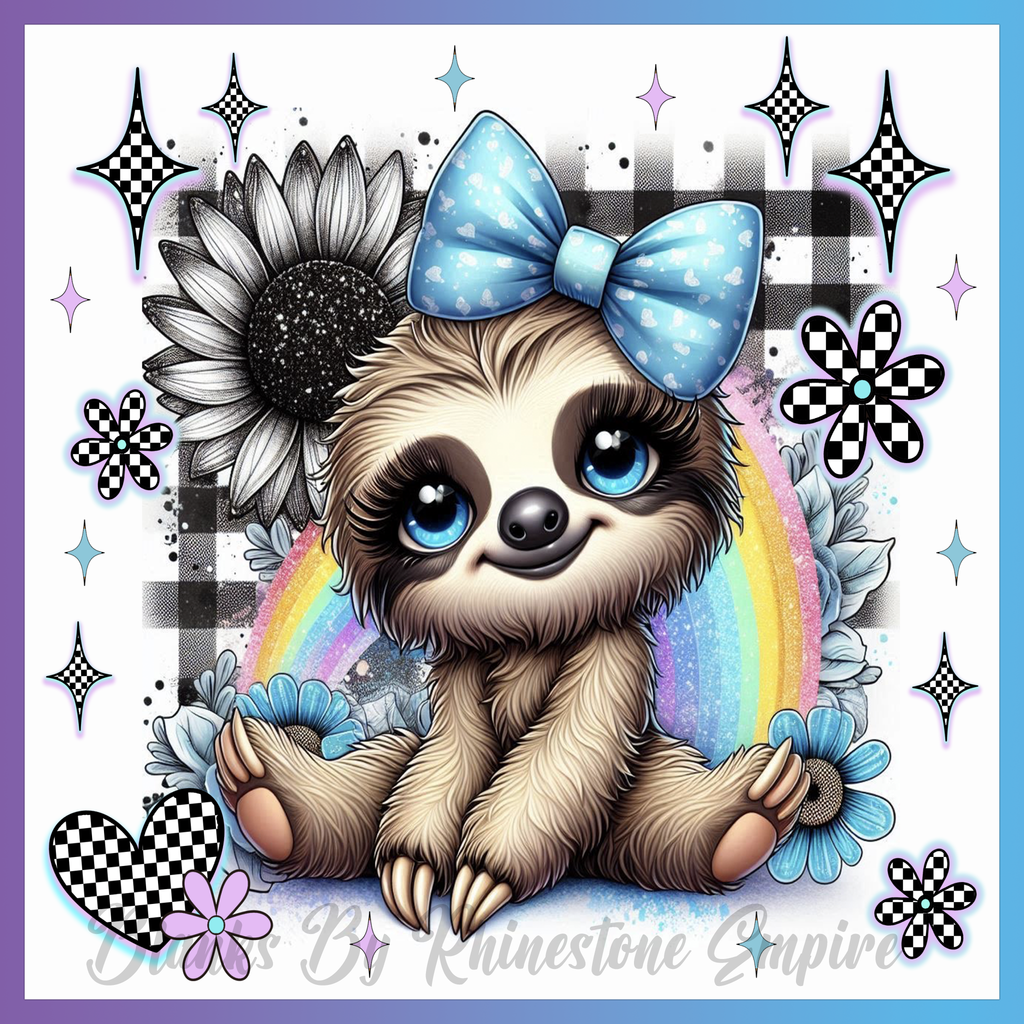 Theme: Sloth with cute, bow, flowers, rainbow.