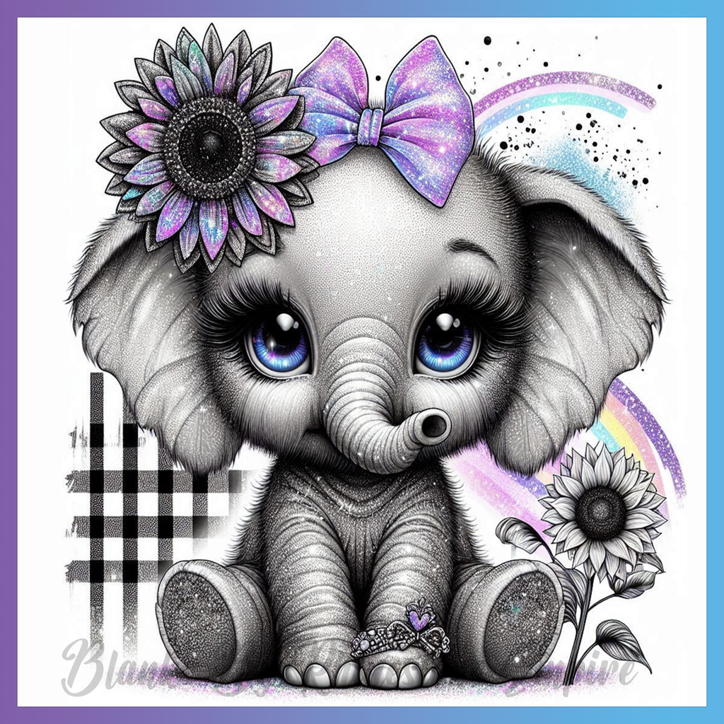 Theme: Elephant with cute, flowers, bow, glitter.