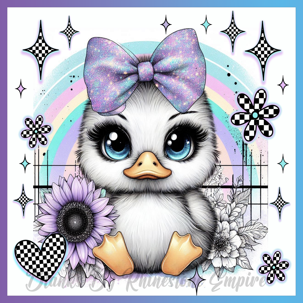 Theme: Duck with cute, bow, flowers, rainbow.