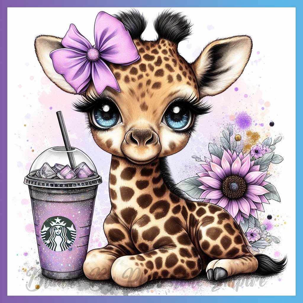 Theme: Giraffe with cute, bow, flower, drink.