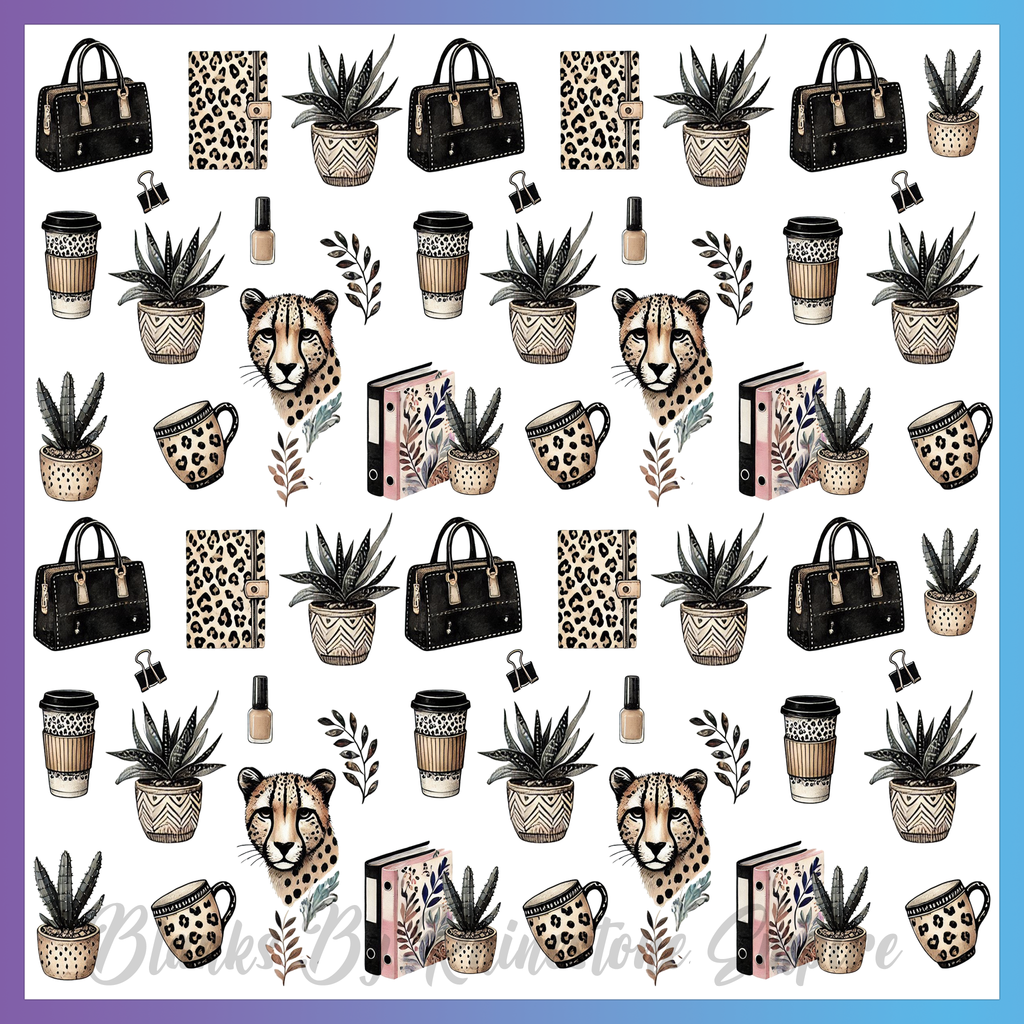 Theme: Tiger with plants, handbags, mugs, leopard.
