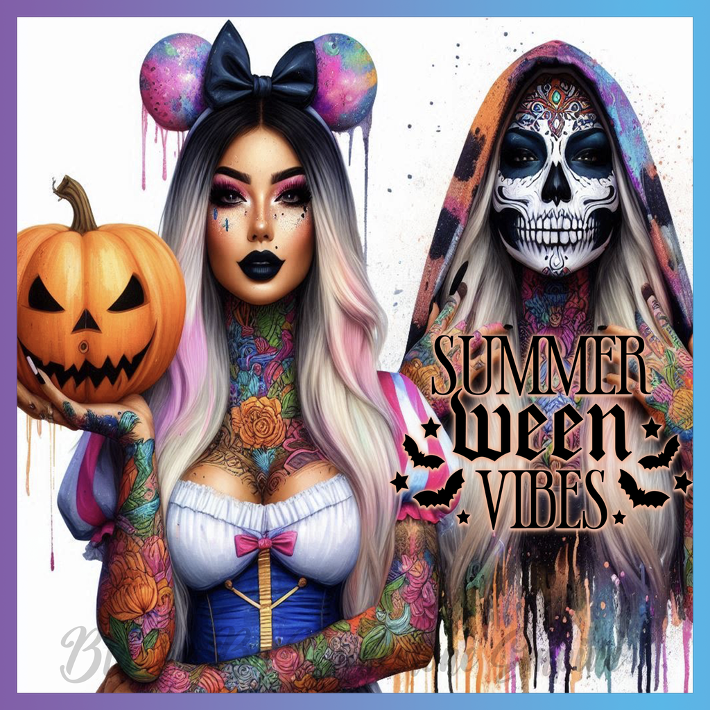 Theme: Girl with tattoo, pumpkin, skull, costume.