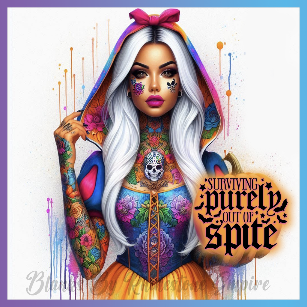 Theme: Girl with tattoo, colorful, flowers, hood.
