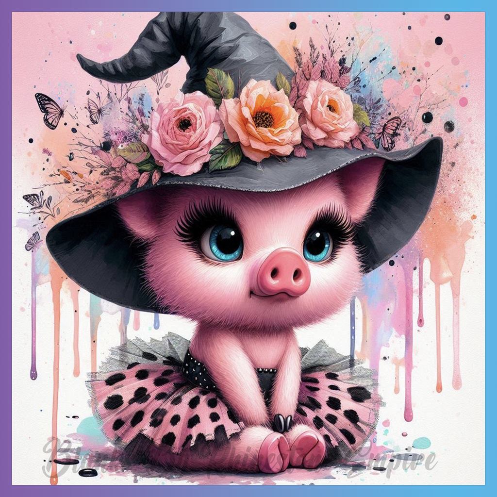 Theme: Pig with hat, flowers, tutu, butterflies.