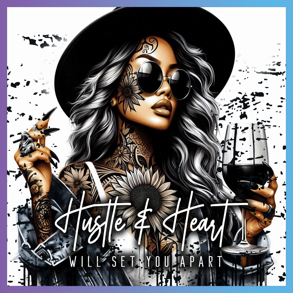 Theme: Girl with tattoo, sunglasses, hat, flowers.
