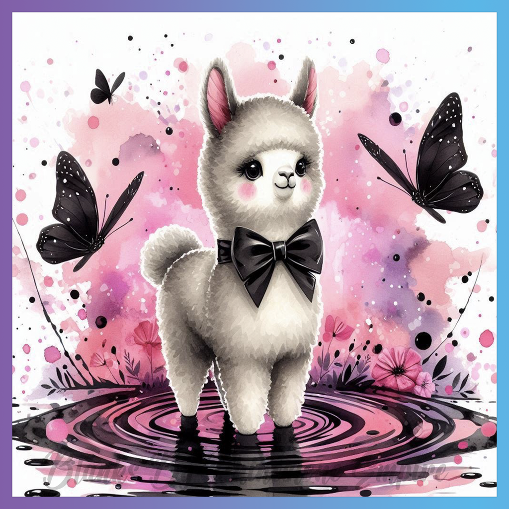 Theme: Llama with cute, butterflies, pink, flowers.