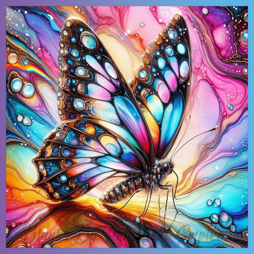Theme: Butterfly with colorful, abstract, swirls, vibrant.