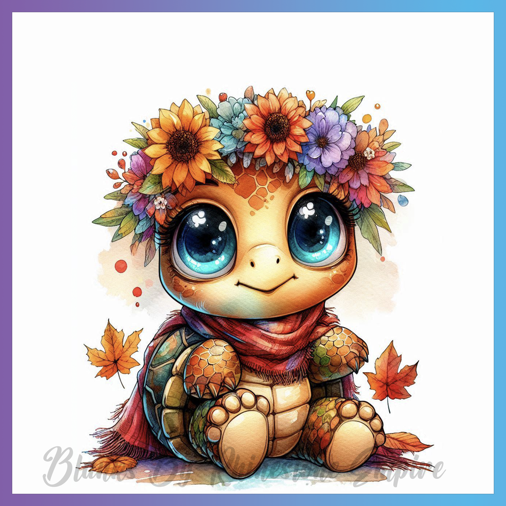 Theme: Turtle with flowers, cute, cartoon, autumn.