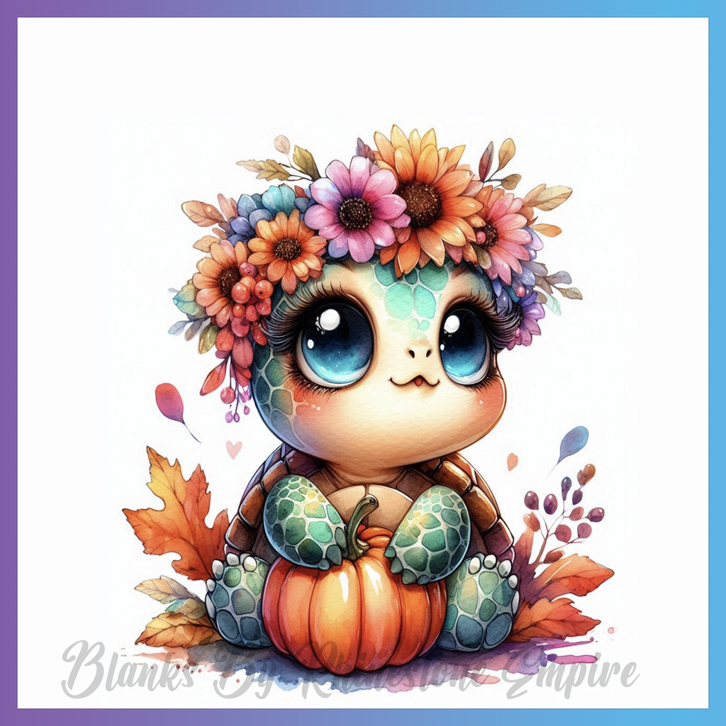 Theme: Turtle with flowers, pumpkin, autumn, cute.