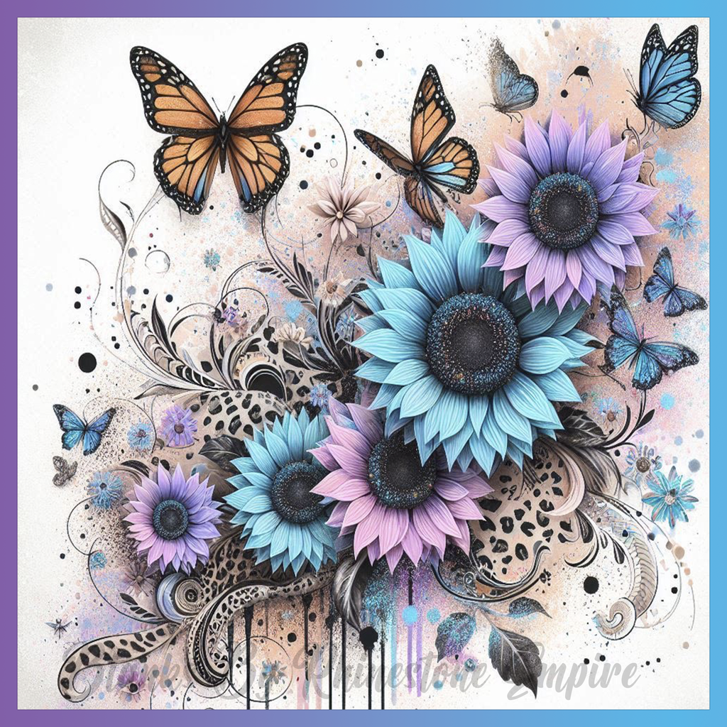 Theme: Butterfly with flowers, colorful, abstract, nature.
