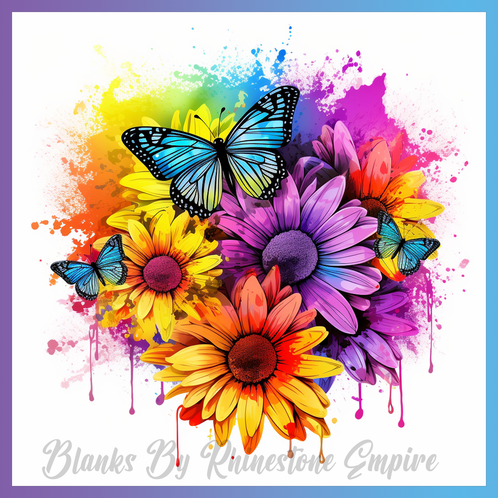 Theme: Butterfly with flowers, colorful, splash, nature.