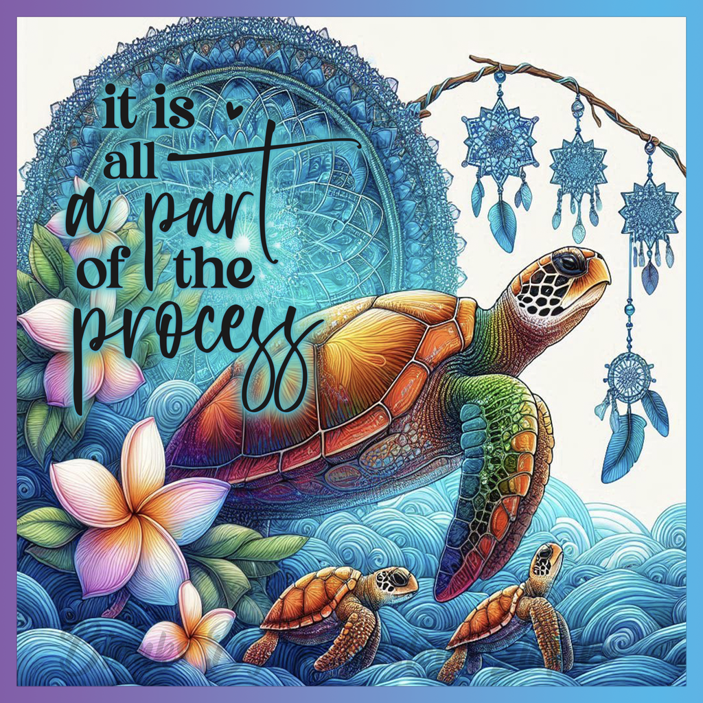 Theme: Turtle with ocean, flowers, dreamcatchers, waves.