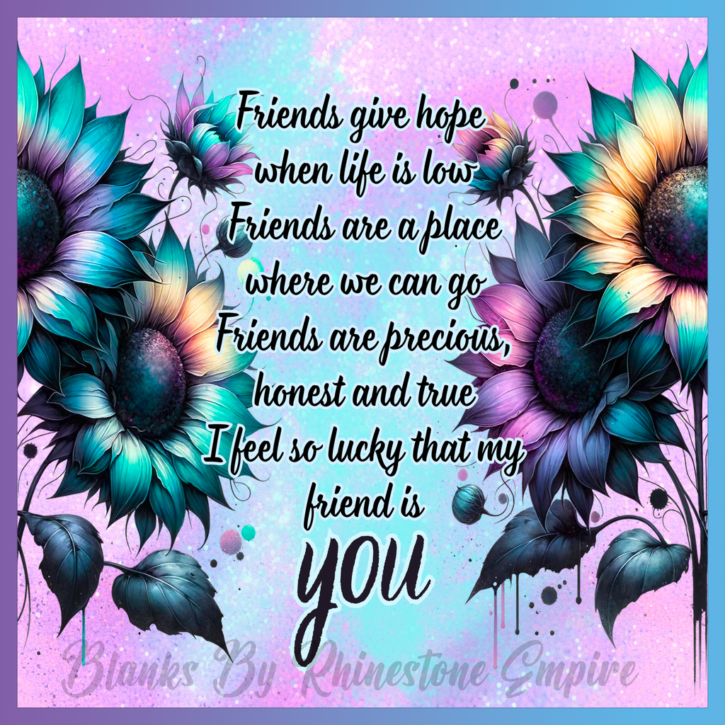 Theme: Friend with sunflowers, colorful, quote, background.