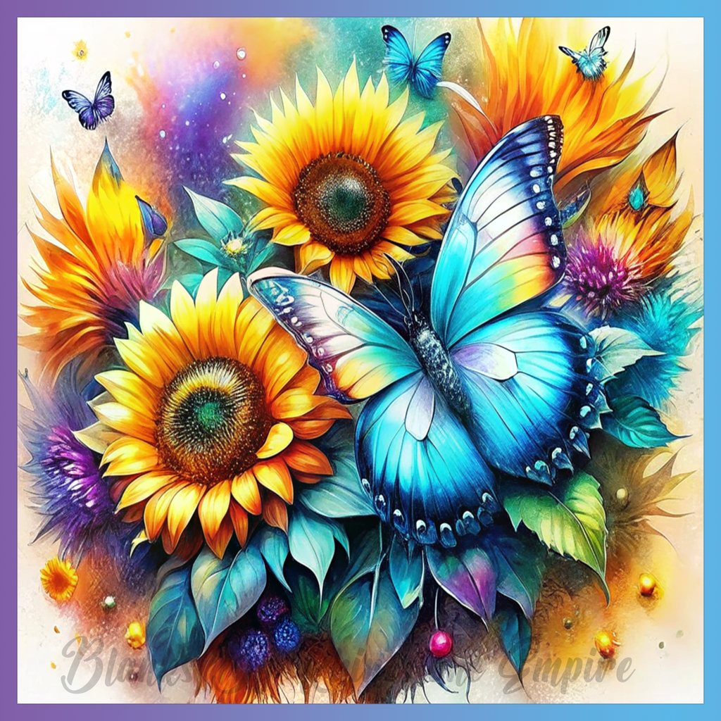 Theme: Butterfly with sunflowers, colorful, nature, flowers.