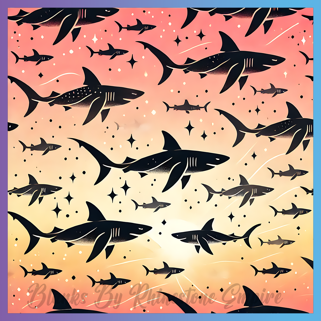 Theme: Shark with pattern, ocean, gradient, silhouette.