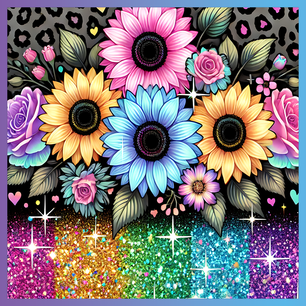Theme: Flower with colorful, glitter, leopard print, roses.
