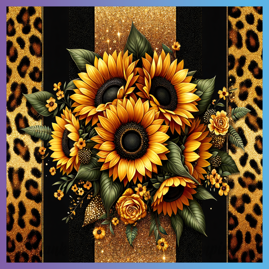 Theme: Sunflower with leopard, gold, floral, pattern.