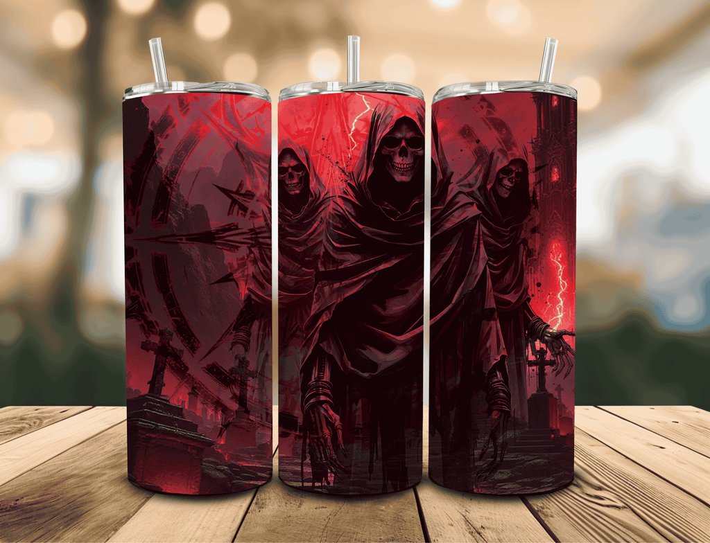 Add some spooky fun to your drink routine with the Red Reaper 20 oz Insulated Tumbler featuring a dark cemetery design. This playful tumbler keeps your drinks hot or cold for hours while bringing a mischievous vibe to every sip. Perfect for those who like a little thrill with their chill!